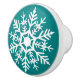 El botón redondo del cajón muestra una estrella blanca de la nieve sobre un fondo turquesa.