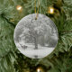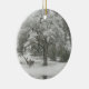 Este es un bello adorno navideño con un par de ciervos en la nieve junto a un gran roble.
