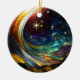 Cometa estilizado de Navidad y ilustracion de estrellas. Redonda. Plano. De dos lados. El mismo ilustracion en ambos lados.