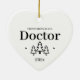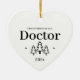 Primera Navidad como adorno de corazón médica para un nuevo trabajo y graduación de la escuela de medicina. Elegantes adornos de cerámica de porcelana en blanco con letras negras. Con árboles y estrellas navideñas.