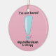 Un punto de exclamación kawaii tomando una siesta con Zs púrpura entre la frase "No estoy aburrido, mi entusiasmo es somnoliento" en el tipo Bauhaus 93. ¡Perfecto para los amantes del arte pop japonés y del humor de la puntuación!