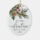 Ornamento de vacaciones de personalizable. Edita la redacción para celebrar tu primera Navidad juntos. Verdes de vacaciones con ilustracion acuático de bayas rojas.