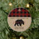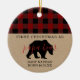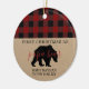 Primera Navidad como padre adorno con un patrón de manchas rojas y negras y oso papá en kraft. Actualiza con tu foto al dorso, nombre y año.