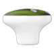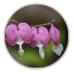 Esta perilla de cerámica tiene flores de corazón sangrantes rosadas. Derechos reservados Marjorie Tietjen.