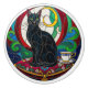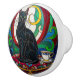 Elegante perilla de cerámica de gato negro victoriano / tirón de la puerta con fondo de mosaico colorido y gato negro sentado en una almohada. Hermosos pernos de cerámica de arte vintage para hacer de su casa un lugar artístico único, transformando fácilmente casi cualquier cosa en su entorno.
