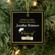 Ornamento de graduación con texto frontal y posterior personalizado. Buen diseño de unisex para ese graduado especial de la escuela secundaria, universitaria o de enfermería. Fácil de personalizar con tu propio texto. Imagen de un gorro de pato blanco y diploma empatado a juego en un cuadrado enmarcado. En este mismo diseño también están disponibles los colores rojo, negro y de otras capas.