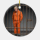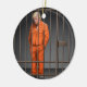 Una pintura digital de un expresidente tras las rejas. Adorno cerámico circular
