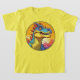 Añade un poco de ruido a tu armario con esta vibrante camiseta que presenta un diseño de dinosaurios audaz y colorido con un ambiente de historieta vintage. Esta camiseta prehistórica de estilo personalizado atrae la atención al instante y es perfecta para los niños o para los amantes de la historia natural.
