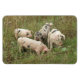 Este imán impresionante presenta una hermosa fotografía de un grupo de cerdos lindos en un campo. Algunos de los cerdos están en la tierra mientras otros miran.
