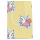 Ilustracion corto de cerdos voladores sobre fondo amarillo. Diseño en bolso de regalo medio. Puede cambiar fácilmente el tamaño del diseño haciendo clic en el botón personalizar. Traje para bebés, baby bloomers, baby bib y más... Perfecto para recienes nacidos nacidos en Año Cerdo 2019. — "El Cerdo (豬) es el duodécimo y último signo de las Ramas Terrestres (亥). En el ciclo Sexagenario continuo, cada 12 años corresponde a Hai, y comúnmente se llama "Año del Cerdo" (豬 年). Hay cinco tipos de cerdos, con el nombre de los elementos chinos. En orden, son: Metalizado, Agua, Madera, Fuego y Tierra. En el zodiaco japonés y el zodiaco tibetano, el cerdo se sustituye por el jabalí[1]. En el zodiaco de Dai, el cerdo es reemplazado por el elefante. En el Gurung zodiac, el cerdo es reemplazado por el ciervo. (...) Se puede decir que las personas nacidas dentro de estos rangos de fechas han nacido en el "Año del Cerdo", mientras que también tienen el siguiente signo elemental: 5 de febrero de 2019 - 24 de enero de 2020 = Cerdo de la Tierra, 23 de enero de 2031 - 10 de febrero de 2032 = Cerdo Metalizado (.......)")