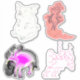Personalizados cortan pegatinas de vinilo de cerdos y cosas rosadas peculiares: una mujer picante con un bolso de mano, un cerdo gordo, un arándano rosado y un elefante rosa borracho y tibio con burbujas de alcohol.