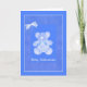 Tarjeta de ceremonia de consagración para un niño con una tarjeta azul con puntos, un arco y un oso lindo en el frente del diseño. Muchas gracias a Obsidiandawn por el uso de su pincel de oso y de HawksmontUniv por el uso del arco.