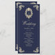 Elegante programa barroco de bodas azul marino y oro con un monograma victoriano vintage, detalles ornamentales del marco y florecimiento clásico. Perfecto para los bodas tradicionales, este programa de doble cara incluye detalles de la ceremonia de la orden de servicio y de la boda. Se coordina con la suite boda totalmente naval y barroca dorada para un lujo atemporal.