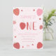 Invitación a Berry First Birthday para Chica Chica Bow & Strawberry Primer cumpleaños | Colección ICHIGO ¿Es su primer cumpleaños de Berry 🍓 planear un chica fiesta de primer cumpleaños? Reúne a su familia y amigos con una invitación para una fiesta de cumpleaños de personalizable DIY Berry. Edite fácilmente su invitación editable de fresa rosa y roja de primer cumpleaños con todos los detalles de la fiesta de cumpleaños del tema de fresa para el dulce de berry de un año. Esta invitación editable a la fiesta de cumpleaños de las bayas rosadas establece el tono para la celebración del primer cumpleaños del tema de las fresas. La colección ICHIGO presenta un fondo rosa claro con doodles de fresas en rojo y rosa, además de arcos dibujados a mano. Uno se escribe con una fresa y letras dibujadas a mano en rojo. Las tipografías pegadizas escritas a mano, serif y sans serif en rojo y rosa con todo el texto editable completan esta invitación chica de fresa de primera fiesta de cumpleaños. ¡Ideal para un chica de verano con el tema del primer cumpleaños!