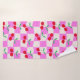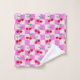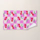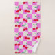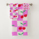 Este es un lindo patrón de cerezas rojas en tableros de ajedrez rosados y blancos. Es una toalla de baño muy bonita para los amantes de la fruta cereza