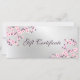 Esta tarjeta de regalo profesional incluye ramas de flores de cerezo rosadas sobre un fondo de Relieve metalizado plateado. Acogida para maquilladores, spa, paisajismo, planificadores de bodas, organizadores de eventos, cosmetólogos, salón de belleza... Se dispone de tarjetas de visita y otros productos de oficina que coincidan con ellas.