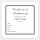 Agregue su nombre a esta tarjeta de certificado de autenticidad adhesiva de personalizable para el arte. Seleccione la opción Matte para poder escribir fácilmente en el pegatina.