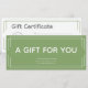 Estos certificados básicos de regalo de negocios en blanco y verde son personalizable y la información de tu negocio es fácil de agregar. También puede añadir su logotipo. Esta colección básica de 4 colores es más adecuada cuando ya tiene una marca existente pero necesita este artículo para contribuir a su tienda/ marca.