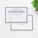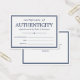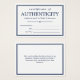 Elegante y minimalista certificado de autenticidad en azul marino y blanco al que puedes añadir tu nombre o el nombre de tu empresa.