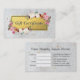 Moda Modelo de tarjeta de visita con tarjeta de presentación de certificado de regalo Boutique en blanco y dorado moderno Damask de papel a mano. Un Salón Elegante o una Plantilla de Certificado de Regalo Boutique. Presenta un diseño botánico blanco y dorado con flores de acuarela coloridas. Perfecto para un Salón de Belleza, Bar de uñas y profesiones relacionadas.