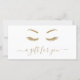 Simple certificado de regalo de negocios con un diseño minimalista con ojos, pestañas y cejas junto con "un regalo para ti" en un elegante tipo de letra de guión con toques de oro sobre un fondo blanco. El reverso tiene el formulario de certificado de regalo junto con la información de contacto de su empresa. El texto y los colores de fondo pueden cambiarse a los colores que desee haciendo clic en el botón personalizar. Este diseño es perfecto para un técnico excéntrico pero también puede funcionar para cualquier negocio en la industria de la belleza.