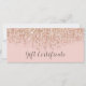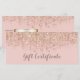 Certificado de regalo de brillo rosa y dorado rosa