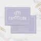 NewParkLane - Un simple pero lindo Certificado de Regalo, con una tipografía blanca dulce con corazoncitos como puntos en las letras 'i', en un fondo de lavanda. Usar cualquier color personalizado como fondo. Un diseño editable perfecto para un salón de belleza, spa, esteticista, peluquería o maquillador, pero también para el propietario de una tienda de regalos, f.i. Fácil de personalizar en Zazzle para un diseño personalizado. Todos los estilos, colores y tamaños de texto se pueden modificar para adaptarlos a sus necesidades. Mira esta colección para ver los elementos coincidentes.