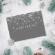 Certificado de regalo de copos de nieve de vacaciones de negocios con copos de nieve que caen sobre un fondo gris plateado con texto blanco elegante. Agregue los detalles de su oferta en el reverso. Perfecto para spas, artistas de maquillaje, terapeutas de belleza, centros de bienestar, estilistas, comercio minorista, salones de uñas, salones de belleza y muchos más