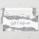 Certificado de regalo de glamour de diamantes con