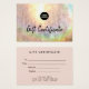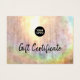 Este diseño neutro y beige tiene un toque de colores holográficos y una textura de color gris. Hay un logo comercial y un diseño de certificado de regalo.