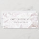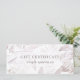 Certificado de regalo de la empresa de impresión de hojas de palma de color blanco y malva suave suave y delicada en la tierra.