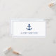 Certificado de regalo de negocios náutico con "Un regalo para ti" junto con un ancla rodeado de un borde azul marino y blanco. El reverso tiene la plantilla de certificado de regalo y su información de contacto. Este sencillo diseño es ideal para una empresa de alquiler de botes, charter de pesca, comerciante de yates o cualquier negocio relacionado con el mar.
