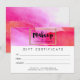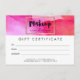 Coordina con la plantilla de la tarjeta de visita de artista de colores de agua rosa negrita antes de las 12.01 horas. Este certificado de regalo de personalizable incluye un texto de pincel pintado a mano para "Makeup" seguido de su nombre o nombre comercial en un lavado de acuarelas rosa brillante para una hermosa marca de identidad para los artistas de maquillaje. El falso borde metálico del Relieve metalizado de oro añade un poco de brillo a este diseño llamativo. Este diseño forma parte de una serie de materiales de oficina de coordinación para ayudar a marcar su negocio de belleza. Arte y diseño de acuarelas originales © 1201AM CREATIVE / www.1201am.com