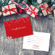 Certificado de regalo de vacaciones de Navidad empresarial con copos de nieve cayendo sobre un fondo rojo con texto moderno. Personalice con los detalles de su empresa e información del regalo en el reverso. Diseñado por Thisisnotme©