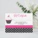 Hermoso certificado de regalo de negocio de panadería hecho en blanco y rosa con un acento de lunares en blanco y negro. Gráficos caprichosos de una magdalena rosa, blanca y negra decoran la parte izquierda del frente y la parte trasera de la tarjeta. El texto está listo para personalizarse según las necesidades de su negocio. Tarjetas de presentación a juego disponibles.