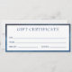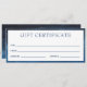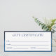 Certificado moderno de regalo de negocios con un diseño sencillo con un borde de acuarela azul marino. El reverso tiene su logotipo e información de negocios sobre un lavado de color azul marino oscuro. Este certificado masculino y profesional de regalo funciona muy bien para un negocio con una base de clientes masculinos.