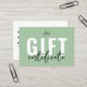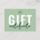 Certificado de regalo de negocios Minimalista de Moda de logotipo. Añade tu logotipo al frente para hacerlo único tuyo. Este sencillo pero elegante certificado de regalo es perfecto para marcas corporativas, pequeñas empresas o individuos como maquilladores, esteticistas, peluqueros y más! El diseño tiene un fondo verde y elegante en la parte delantera, pero se pueden personalizar los colores para que coincidan con el estilo de la marca. Una combinación de tipografía moderna y guionista le da un aspecto profesional y a la vez moda.