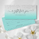 Guión simple y elegante certificado de regalo de bloques de color negro color azul purpurina plata verde azulado azul oscuro. Este elegante certificado de regalo de guión se ajusta perfectamente a un sobre comercial estándar #10. Perfecto para su marca y negocio.