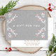 Bono de regalo de cartón gris Kraft con ramas blancas y bayas rojas.