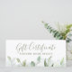 Certificado de regalo de vegetación con acuarela rústica. Perfecto para un salón de belleza, estilista, artista de maquillaje o cosmetólogo.