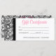 Certificado de regalo / tarjeta de regalo del Salon Spa con patrón de damasco floral de bonito.