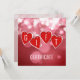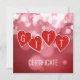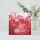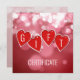 Ilustracion romántico con corazones rojos colgados con letras de "REGALO" en un fondo de bokeh.