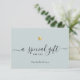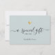 ¡Un regalo especial para ti! Esta moderna tarjeta de notas de certificado de regalo de corazón dorado de moda para sus clientes incluye caligrafía con letras a mano junto a sus nombres en una elegante tipografía serif. Esta es la elegante versión azul verde polvoriento.