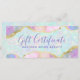 Certificado de regalo iridiscente Gemstone Pastel Opal. Este diseño presenta piedras de color arcoíris de opal pastel en un estilo artístico contemporáneo acentuado por los bordes purpurinas dorados. Este brillante diseño de chicas es perfecto para cualquier mujer profesional que busque una divertida identidad artística corporativa