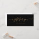 Sencillo y elegante certificado minimalista de regalo negro y oro. Este elegante certificado de regalo de guión se ajusta perfectamente a un sobre comercial estándar #10. Perfecto para su marca y negocio.