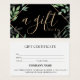 Tarjeta de certificado de regalo de negocios sencilla y moderna.