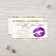 Tarjeta de certificado de regalo. El purpurina morado se labra sobre un fondo blanco con acentos dorados. (Para productos y diseños coincidentes, escriba Palabra clave: PURPURINA LIPS ) (Nota: No es un verdadero Purpurina, es una impresión) ⭐ Este producto es un 100% de Personalizable. Los gráficos y el texto se pueden borrar, mover, cambiar de tamaño, girar, etc... ⭐ 99% de mis diseños en mi tienda están hechos en capas. Esto facilita el redimensionar y mover los gráficos y el texto para que encajen perfectamente en cada producto. ⭐ (Asegúrese de cambiar el tamaño o mover los gráficos si fuera necesario antes de realizar el pedido) También puede "TRANSFER DESIGN" en otros productos de Zazzle y ajustar el diseño para que se ajuste a la mayoría de los artículos de Zazzle. (el botón está en el lado derecho de la página) Algunos de los gráficos de texto están listos para rellenar los cuadros o puede pulsar sobre el botón "PERSONALIZAR" para añadir, mover, borrar, cambiar el tamaño, el color de fondo o cambiar cualquiera de los tipos de letra o gráficos. El diseño se realiza con vectores de alta resolución y/o gráficos digitales para una impresión profesional. ⭐ NOTA: (ESTA ES UNA IMPRESIÓN. Todos los diseños de productos de zazzle son "impresiones" a menos que se indique lo contrario en "Acerca de este producto") El diseño se imprimirá EXACTAMENTE como lo ves en la pantalla y en el producto...por lo tanto, asegúrese de que cuando realice sus cambios en el redimensionamiento de cualquiera de los gráficos o textos que encaja correctamente en las áreas y que su ortografía y su redacción sean como le gusta que sea en tamaño, color y tipo de letra. Si tiene alguna pregunta sobre el "DISEÑO ÚNICAMENTE" o necesita ayuda, póngase en contacto conmigo en mi correo electrónico directo - siggyscott@comcast.net o visite el enlace de mi tienda: http://www.zazzle.com/store/designsbydonnasiggy (Copiar y Pegar) Estaré encantado de ayudar. ⭐ TODAS LAS DEMÁS PREGUNTAS (como el envío, el reembolso, la impresión es incorrecta, o el producto en sí, etc...) POR FAVOR CONTACTE CON ZAZZLE O EL MAKER ⭐ DIRECTAMENTE ⭐. Gracias por el apoyo y por parar por mi tienda - DesignsbyDonnaSiggy. © Donna Siegrist ⭐ ⭐ ⭐ ZAZZLE promete 100% de satisfacción.