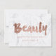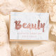 Una moderna y elegante tarjeta de regalo para artistas de la belleza tarjeta de visita con una moderna tipografía de pincel estilo escritura a mano en un falso Relieve metalizado de oro rosa sobre un elegante y moderno fondo de mármol blanco. Si necesitas alguna personalización, no dudes en contactarme