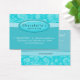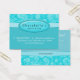 Tarjeta de regalo de salón / certificado (tarjeta de visita) para uñas o peluquería o Spa con estampado floral de bonito en damasco azul elegante y de moda y rayas con burbujas de nombre de empresa oval.