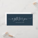Sencillo y elegante certificado de regalo azul marino minimalista. Este elegante certificado de regalo de guión se ajusta perfectamente a un sobre comercial estándar #10. Perfecto para su marca y negocio.